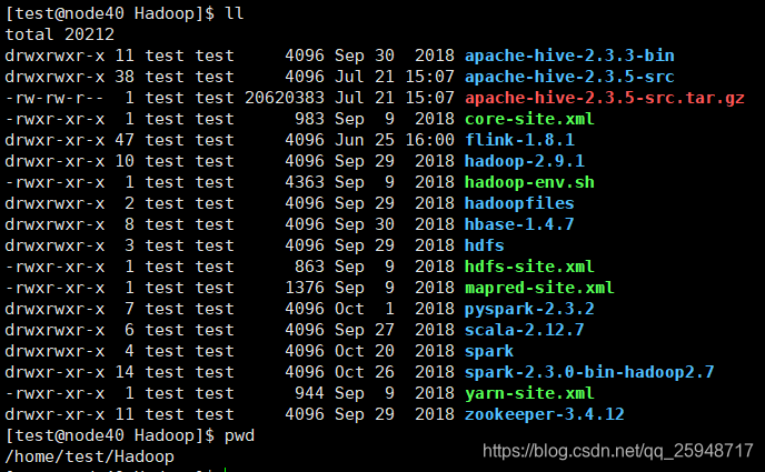 其他所有的生态组件都安装在各节点的/home/test/Hadoop下