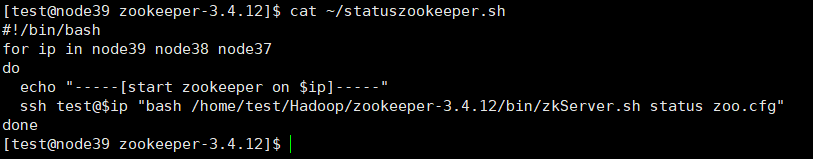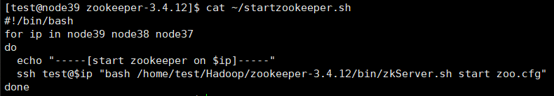 为了避免一台台挨着开启,我写一个脚本,可以启动多个几点下的zookeeper: