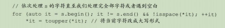 上面这段代码将字符串中的字母转换为‘x'。变量c是引用类型。这种范围for循环的循环体内不能有改编遍历对象大小的语句
