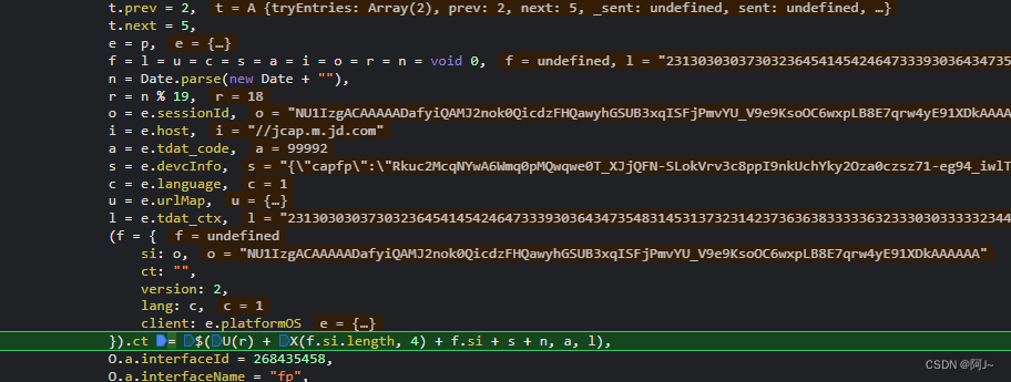 接着走fp接口,加密涉及到浏览器指纹,第一次api返回的数据