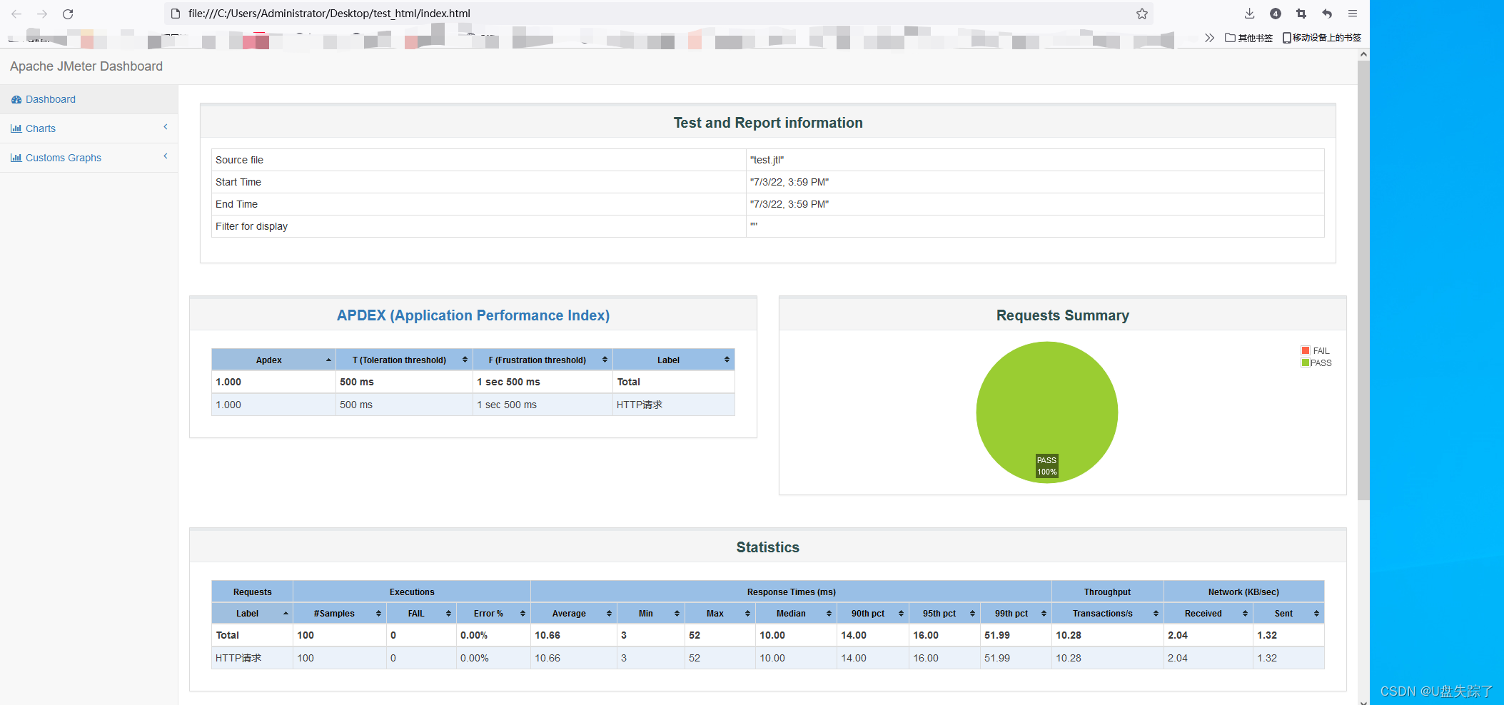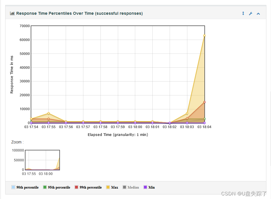 Response Time Percentiles Over Time (successful responses):最大,最小,平均,用户响应时间分布