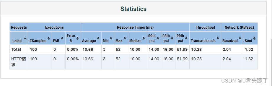 Response Time Percentiles:响应时间百分比
