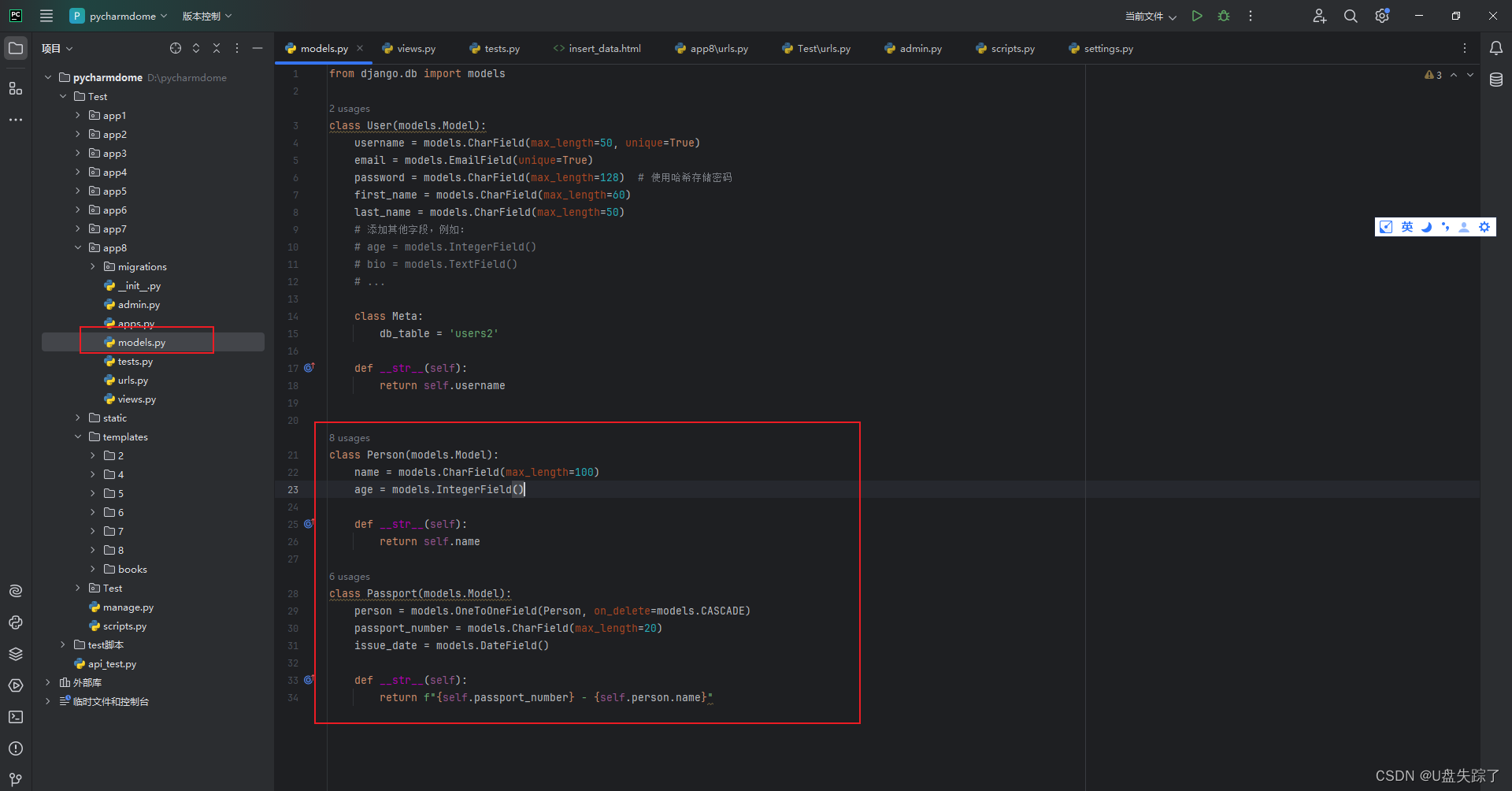使用迁移命令会生成Person和Passport两个张模型表,Passport表中生成一个外键,命名为person_id