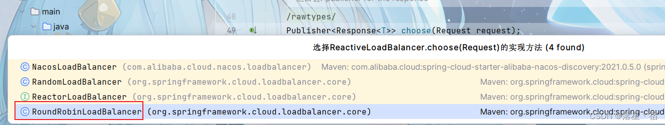 这是一个接口 ,我们查看里面默认实现的轮询负载均衡算法(随机等负载均衡算法比较类似)