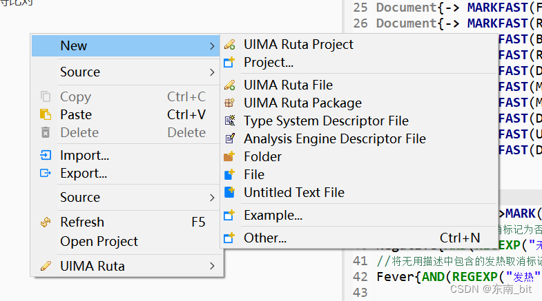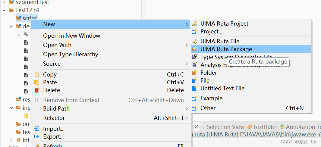 workbench安装完成之后,在平时新建项目的地方右键,会弹出来Uima Ruta Project
