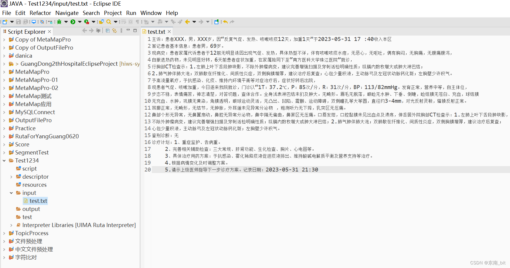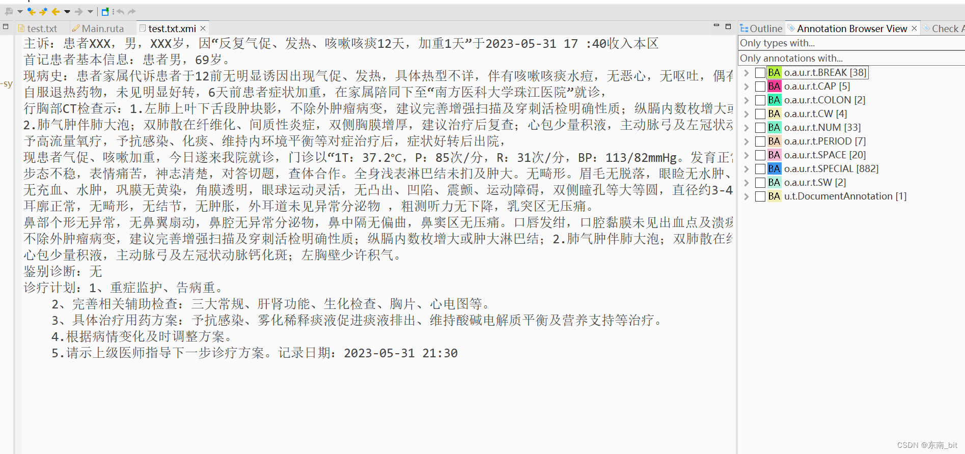 我们先在Input中放入一个文本文件,其中的内容就是开头我们展示的病历内容