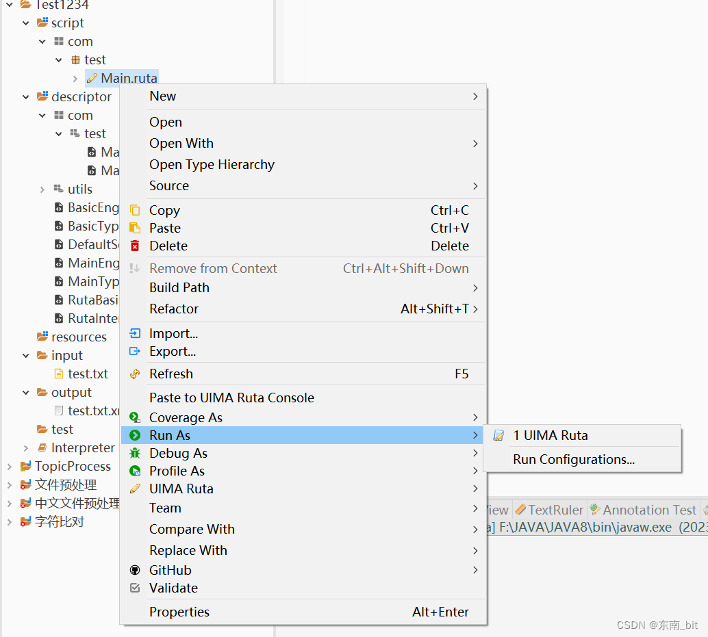 然后在test包上右键,选择UIMA Ruta File,给赋予个名字,比如就叫Main