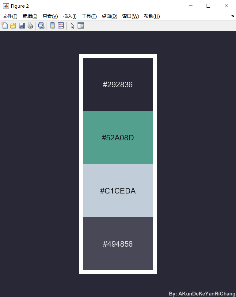 %% demo9-联想配色% 输入联想关键词,自动生成配色C1 = TheColor('think','简单','seka',1);%% demo10-配色盲盒% X模式,自动生成配色C2 = TheColor('X','seka',1);