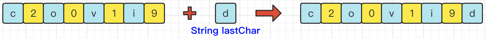 当全都拼装完毕后,最后将lastChar放到最终字符串的末尾处。