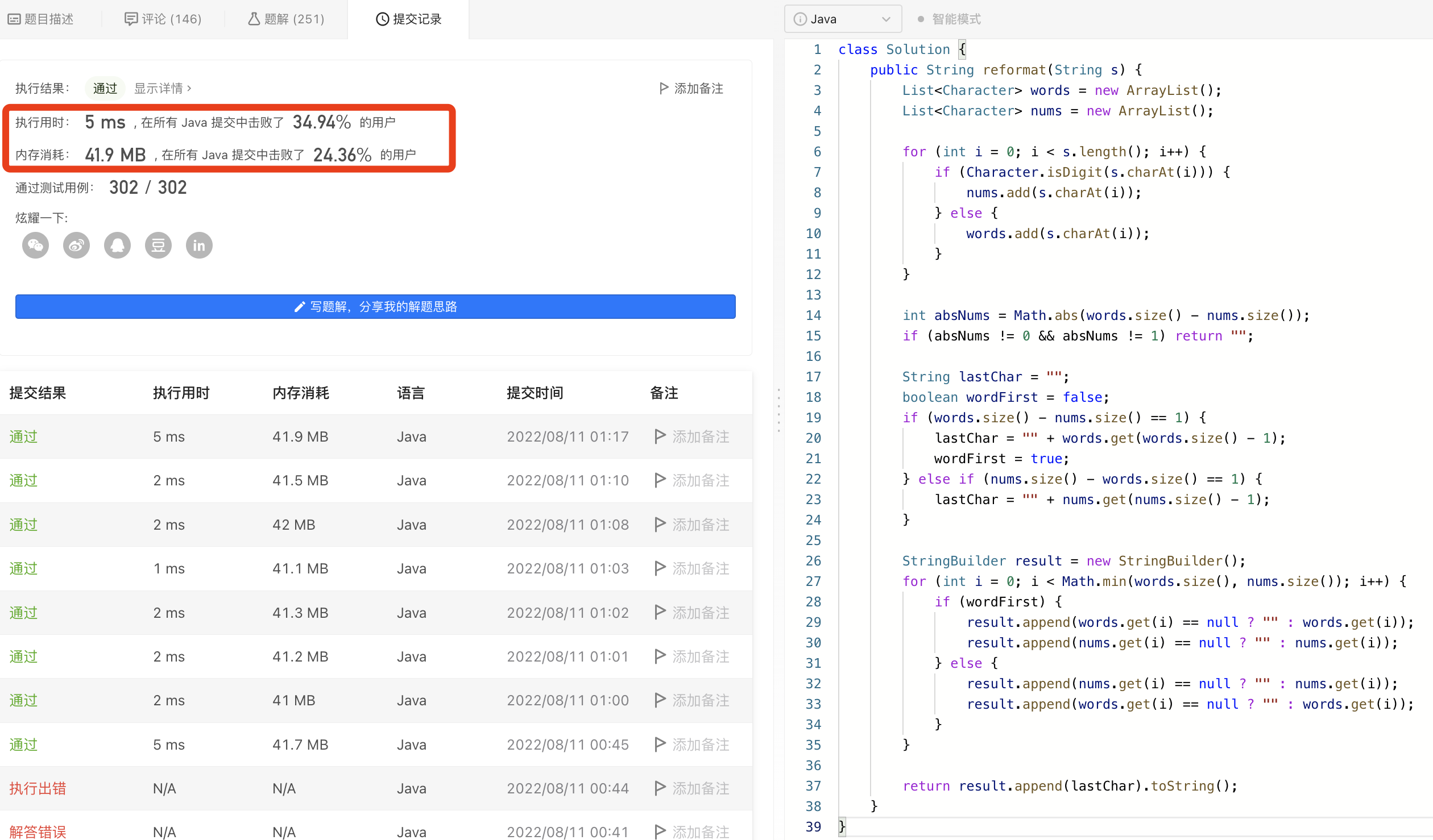 请你将该字符串重新格式化,使得任意两个相邻字符的类型都不同。也就是说,字母后面应该跟着数字,而数字后面应该跟着字母。