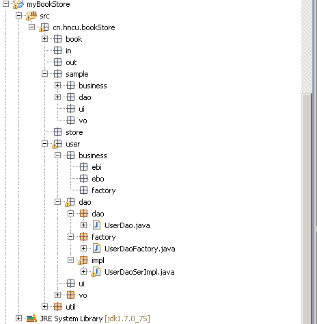 表现层(ui)、逻辑层(business) 和 数据层(dao)
