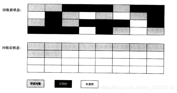 根据老年代的特点,有人提出了另外一种标记-整理算法。是基于标记清除算法实现的,但是后续步骤不是直接对可回收对象进行清理,而是让所有存活的对象都向一端移动,然后直接清理掉其他的内存。