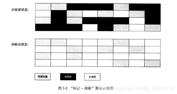 标记-清除算法为最基础的垃圾收集算法。首先分为标记和清除两个阶段,首先标记出所有需要回收的对象,在标记完成后统一回收所有被标记的对象。