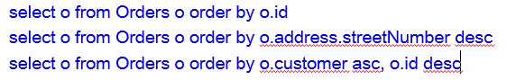 Stringjpql= "FROM Customer c WHERE c.age > ?ORDER BY c.age DESC";