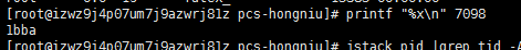 挑选TID为14065的线程,查看该线程的堆栈情况,先将线程id转为16进制,使用printf "%x\n" tid命令进行转换