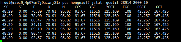 3.1、使用jstat -gcutil命令查看进程的内存情况