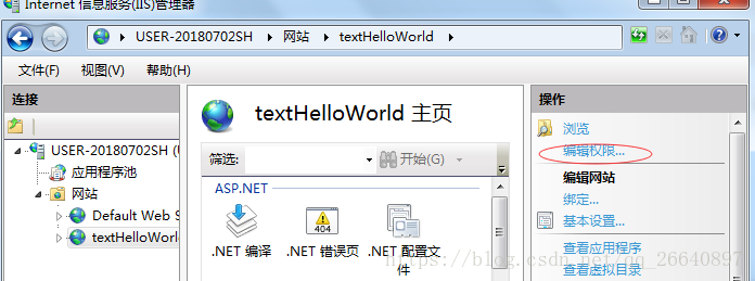 修改方法1:打开IIS管理器,点击你部署好的网站,图片右侧有编辑权限