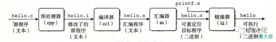 在Unix系统上,从源文件到目标文件的转化是由编译器驱动程序完成的: