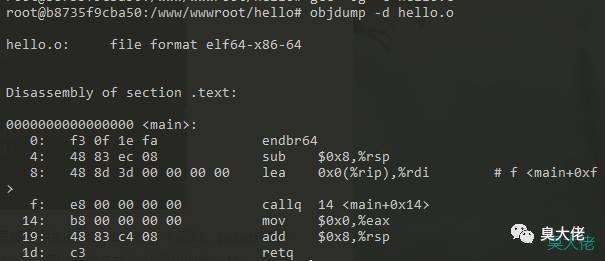 在Linux系统中,带 ‘-d’ 命令行标志的程序OBJDUMP(表示 “object dump”)可以充当这个角色: