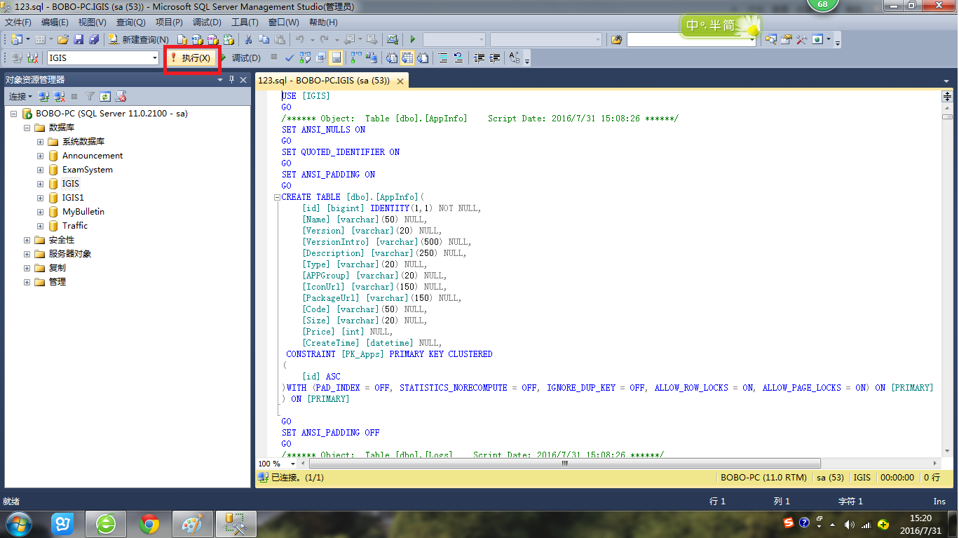 1 在一个新的数据库实例中创建一个一模一样的空的数据库,名称也为IGIS。