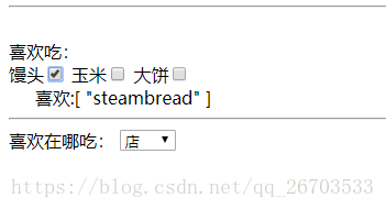 馒头<input v-model="food" value="steambread" type="checkbox">