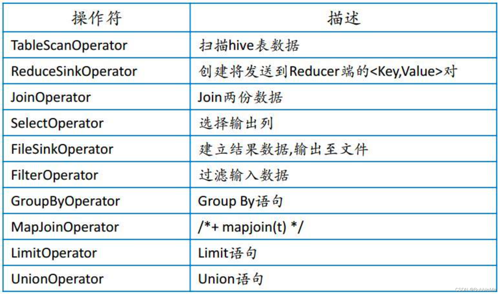 Hive 将 HQL 转换成一组操作符(Operator),比如 GroupByOperator, JoinOperator 等