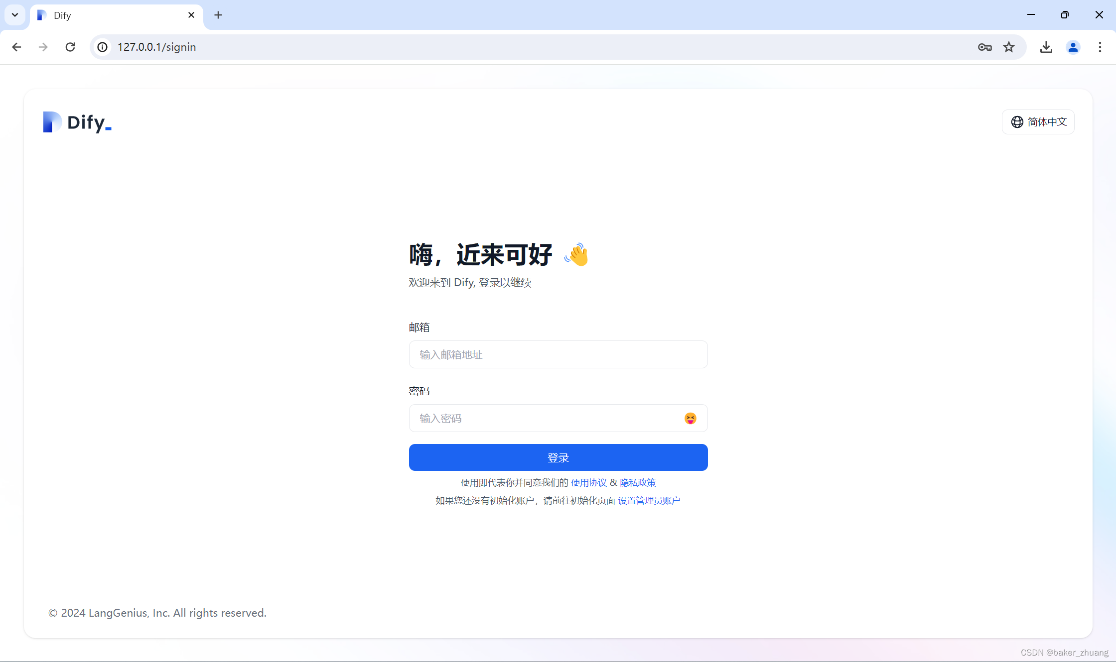 第一次进入后会要求设置管理员账号,设置完成后就可以登录使用了