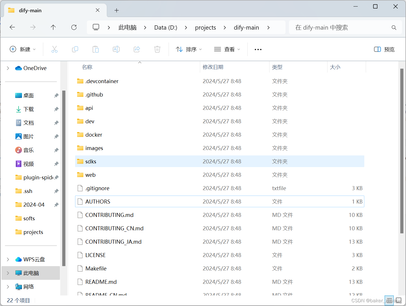 这节一起来实现Dify的离线部署,官方的github仓库也提供了docker的部署方式,我们也使用docker的方式部署,因此需要在window上安装docker环境,安装好后,我们先从github将源码下载下来,然后解压到一个文件夹下,这里是我下载后解压的项目目录