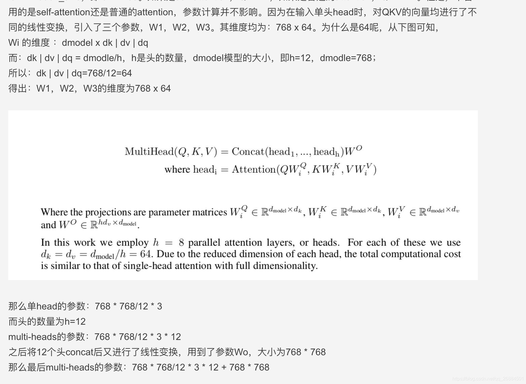 multihead的参数计算