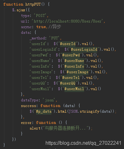 http://localhost:8080/User?_method=put&id=1001&name=lisi 这样可以将 user表里面 id=1001 的用户名改为lisi