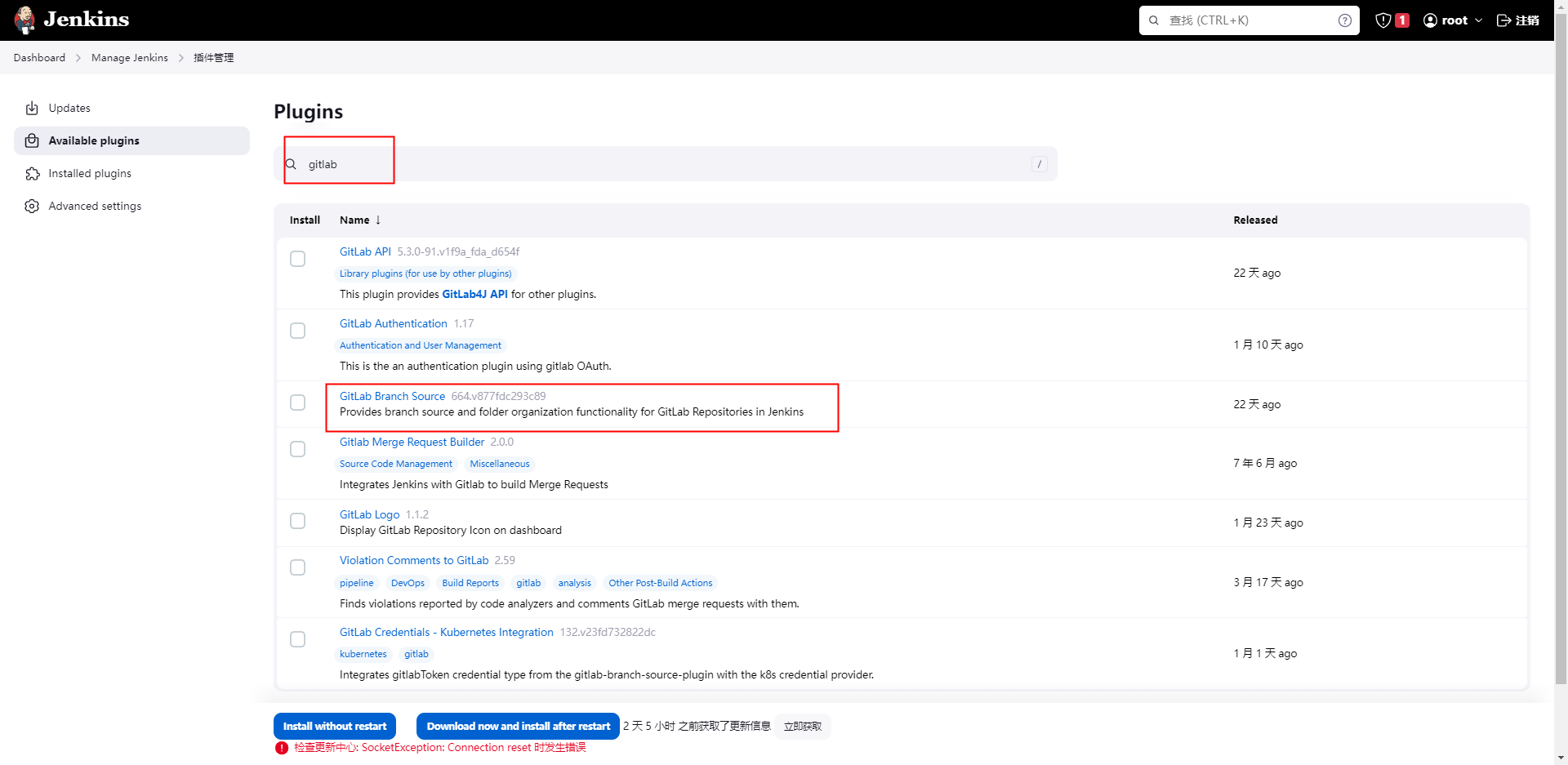 jenkins安装插件GitLab分支源代码版本(GitLab Branch Source)