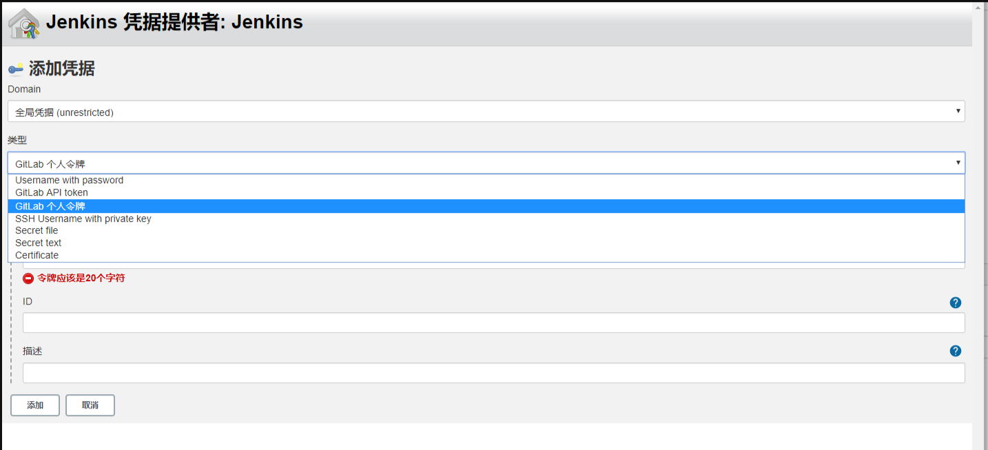 【注意】添加凭据时类型选择“Gitlab 个人令牌”