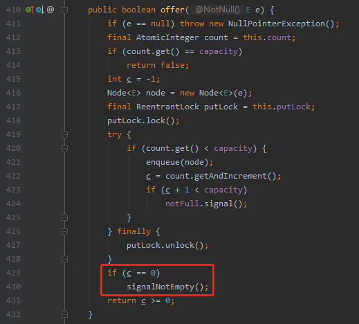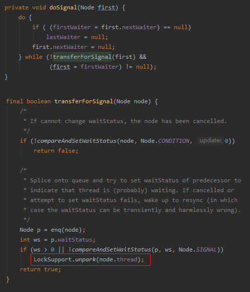 其中signalNotEmpty() 最终会走到 doSignal 方法,而该方法里面会调用 transferForSignal 方法。