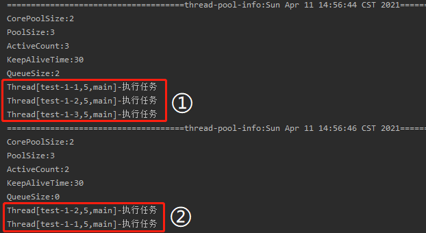 Thread[test-1-1,5,main]-执行任务 Thread[test-1-2,5,main]-执行任务