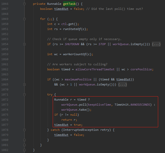 boolean timed = allowCoreThreadTimeOut || wc > corePoolSize;