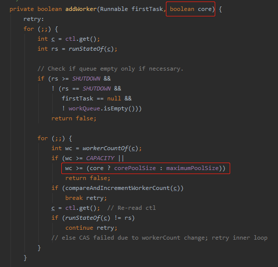 core 参数仅仅是控制取 corePoolSize 还是 maximumPoolSize。