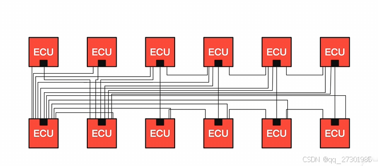 若不用CAN总线,那么各个ECU之间的连接会如下所示