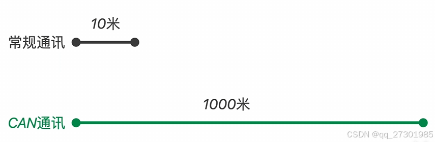CAN总线是两根线共同作用,即便是产生干扰,也是两根线同时受到干扰,他们的压差也会保持不变,这样就能保证传递的信息不受干扰,所以CAN信号传输的距离很长,可以达到1000M