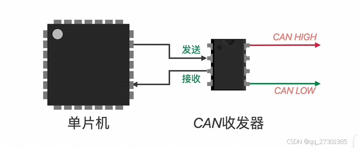 CAN收发器也可以把接收到的信号转换为差分信号,转化为普通电平信号,然后再发送给单片机