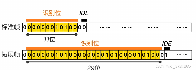 第一位是IDDE位,是用来区分标准格式和拓展格式的
