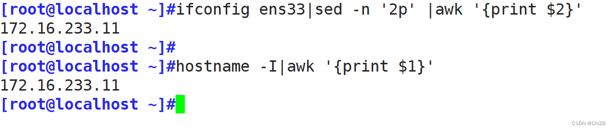 ifconfig ens33 | sed -n '2p' |awk '{print $2}'