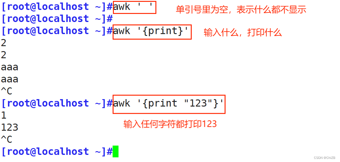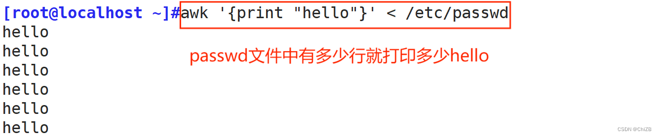 pattern语句块中的通用命令是最重要的部分,也是可选的。如果没有提供pattern语句块,则默认执行{ print },即打印每一个读取到的行,awk读取的每一行都会执行该语句块