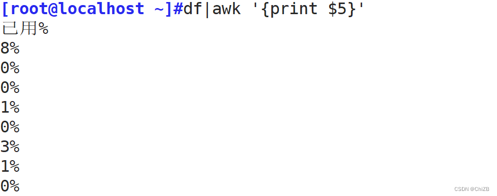 df | awk -F"[[:space:]]+|%" '{print $5}'