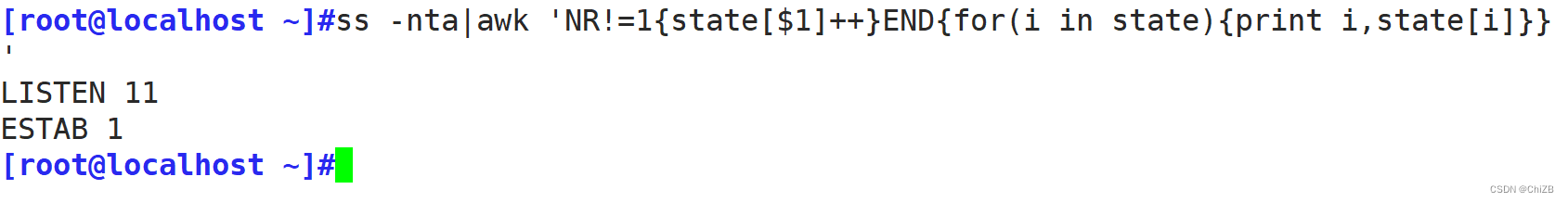 ss -nta|awk 'NR!=1{state[$1]++}'