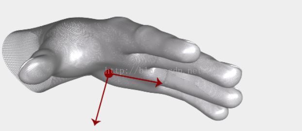 手的位置基于其手掌位置属性,手掌位置属性提供一个基于Leap坐标系的手掌中心点坐标(三维,单位:毫米)。手的方向由两个向量决定:朝向,从手掌中心指向手指的向量;手掌法线,方向向下穿过手掌并与手掌平面垂直。