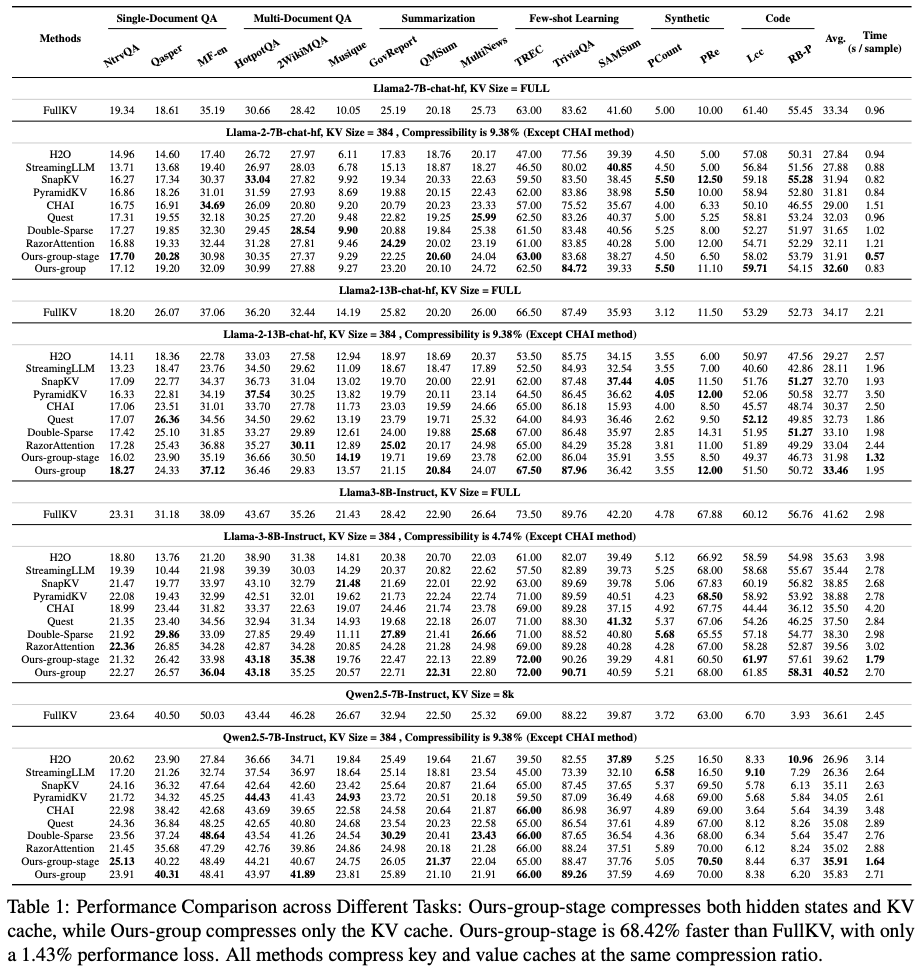 基于以上理论,我们设计了UNCOMP框架,并首次通过直接压缩Prefill阶段的隐藏状态,来间接优化KV Cache,实现了计算与内存的联合优化。