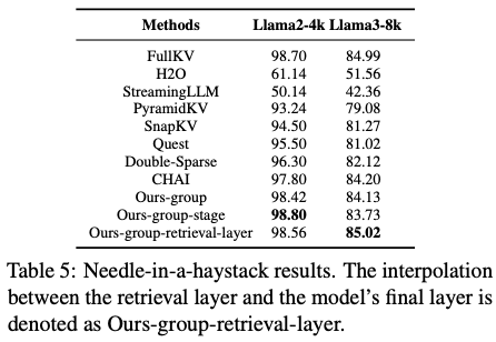 通过合并检索层和最后的层大海捞针性能几乎无损,在特定任务上超越全尺寸基线。