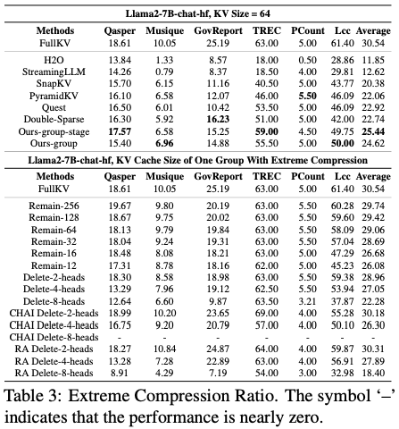 头级压缩 (Head-wise): 在Decoding阶段压缩流式头的KV Cache,保留检索头,节省内存。