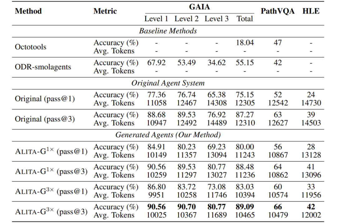 研究价值:ALITA-G 为 AI Agent的自动化、专业化发展提供了可行路径,尤其适用于医疗、学术、工程等需要深度领域知识的场景。