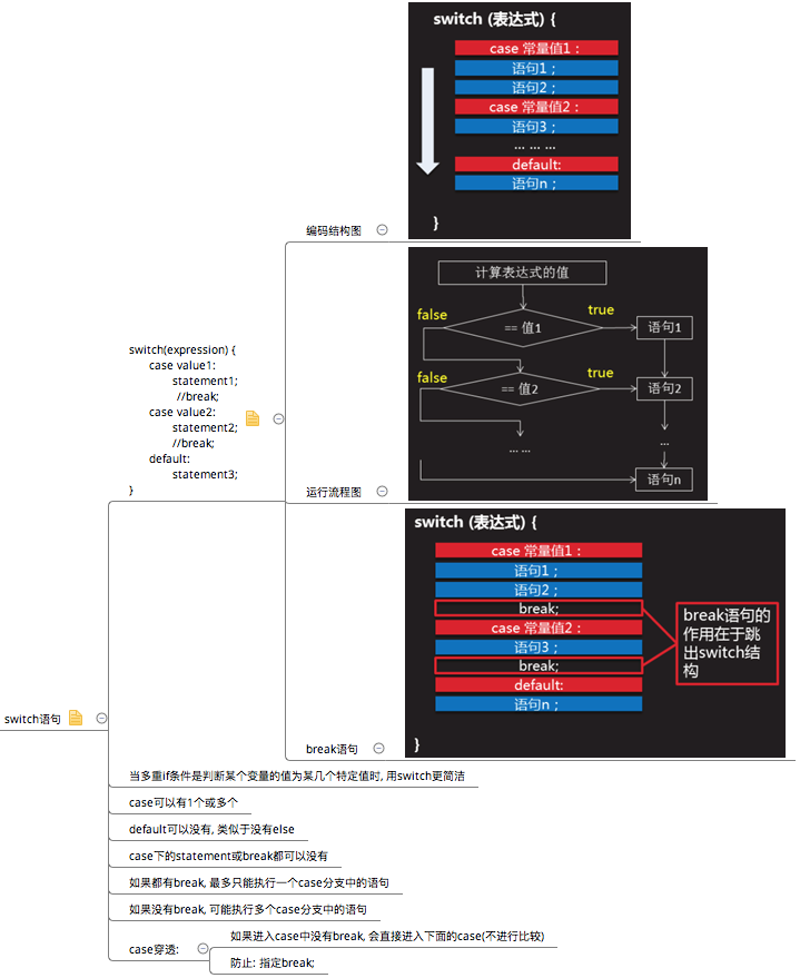 当重 if 语句中判断的变量是几种值时,可以选择使用 switch 语句